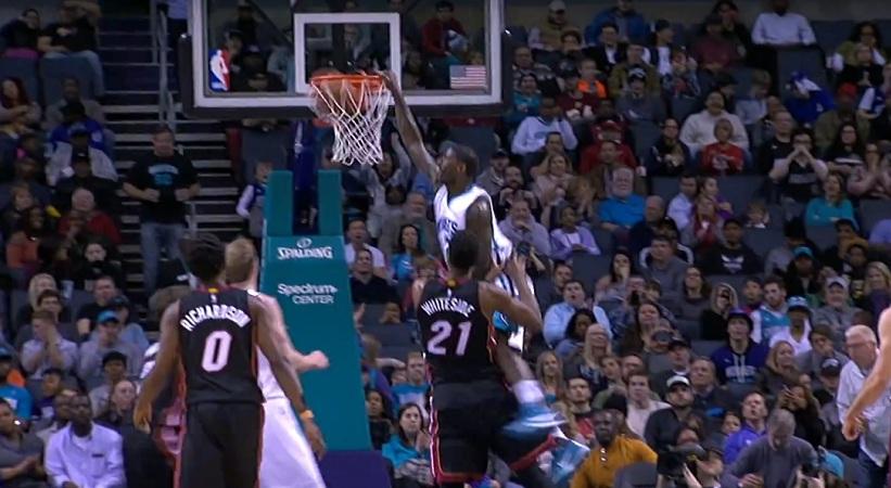 Ο Μάρβιν Γουίλιαμς με ένα εντυπωσιακό κάρφωμα στη νίκη των Χόρνετς επί των Χιτ κέρδισε την πρώτη θέση.