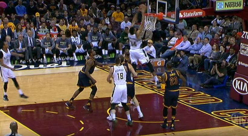 Στην ήττα των Μπακς από τους Καβαλίερς πέρα από τη φοβερή τάπα του στον Λεμπρόν Τζέιμς ο 21χρονος άσος είχε και ένα εντυπωσιακό φόλοου-κάρφωμα, που τον έφερε στο νούμερο «7» του Top 10.