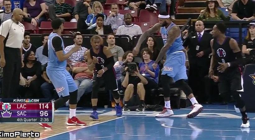 Ο ΝτεΜάρκους Κάζινς είχε νεύρα που οι Κινγκς έχαναν από τους Κλίπερς. Έτσι όταν ο Κρις Πολ πήγε να του κλέψει την μπάλα (με φάουλ), ο ιδιόρρυθμος σταρ του Σακραμέντο τού πέταξε τη μπάλα στα μούτρα.
