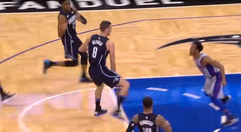 Σε έναν αιφνιδιασμό των Μάτζικ με τέσσερις παίκτες απέναντι σε έναν των Πίστονς ο Μάριο Χεζόνια επιχείρησε μια φαντεζί πάσα και τα έκανε θάλασσα.