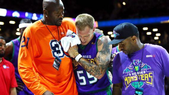 Ο σπουδαίος πλέι μέικερ του παρελθόντος, που πλέον είναι 41 ετών, χτύπησε στα τελευταία λεπτά του πρώτου του αγώνα και οι υπεύθυνοι του πρωταθλήματος αποφάσισαν για να μειωθεί η καταπόνηση των αθλητών, που είναι ως επί το πλείστον προχωρημένης ηλικίας, να κρίνονται τα ματς πλέον στους 50 κι όχι στους 60 πόντους.
