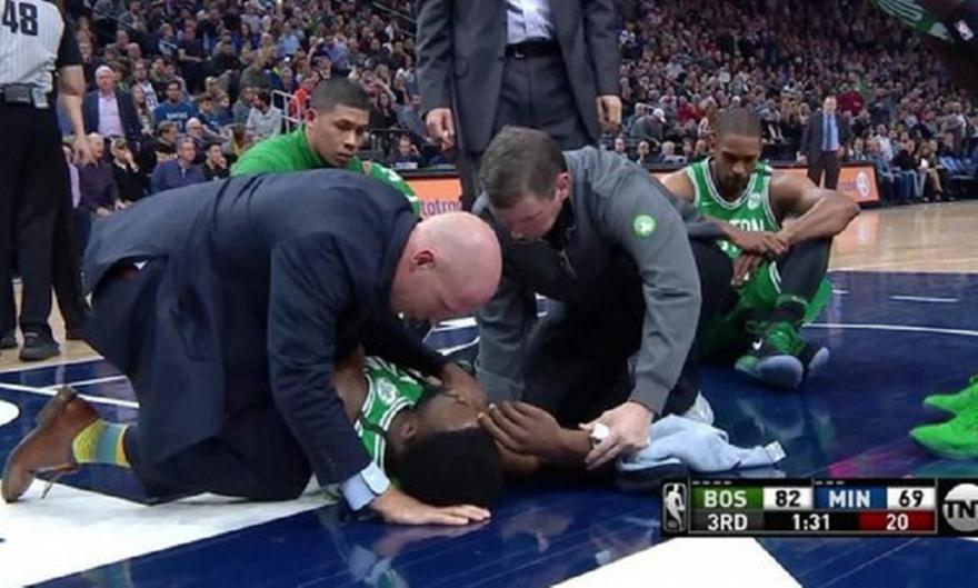 Κατά τη διάρκεια της αναμέτρησης των Σέλτικς με τους Τίμπεργουλβς στη Μινεσότα, ο 21χρονος γκαρντ/φόργουορντ είχε άσχημη πτώση μετά από κάρφωμά του και «πάγωσε» όσους ήταν στο γήπεδο.