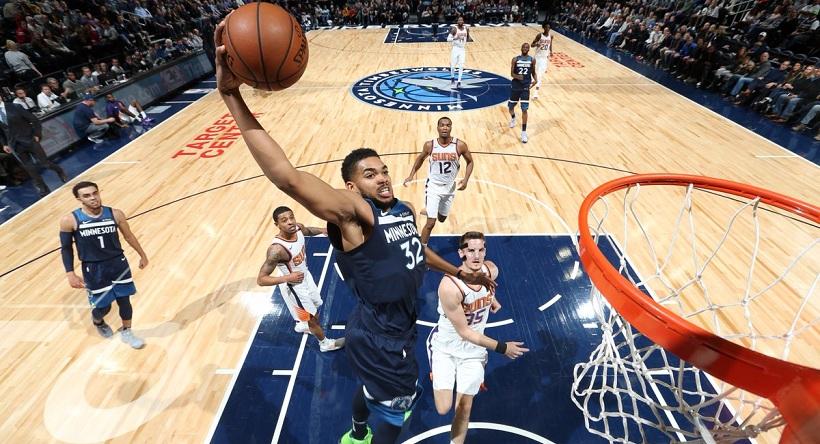 O οδοστρωτήρας (32 πόντοι, 12 ριμπάουντ) Καρλ-Άντονι Τάουνς φιγουράρει στην πρώτη θέση των highlights των χθεσινοβραδυνών του NBA.
