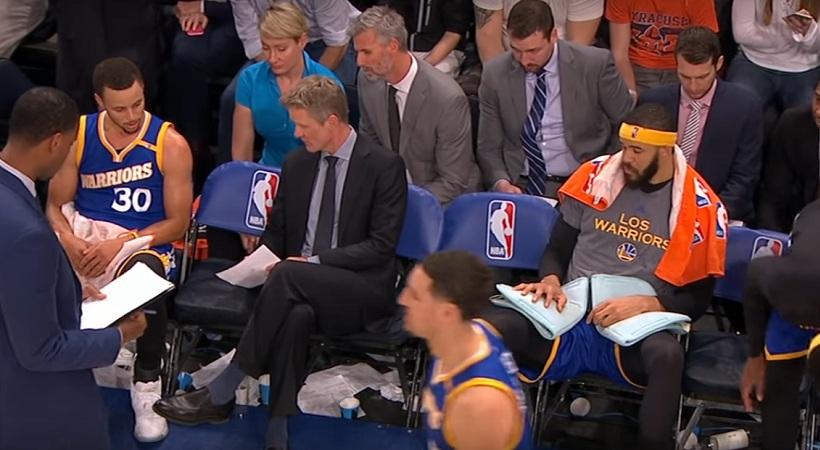 Ένα πολύ όμορφο στιγμιότυπο κατέγραψε ο «κοριός» του ΝΒΑ στον πάγκο των Γουόριορς στη διάρκεια του αγώνα με τους Νικς. Ο Στιβ Κερ βλέποντας τον Στεφ Κάρι ανήσυχο και αγχωμένο λόγω των κακών του εμφανίσεων στα προηγούμενα 2-3 παιχνίδια, έσπευσε να τον καθησυχάσει μιλώντας του σαν πατέρας.