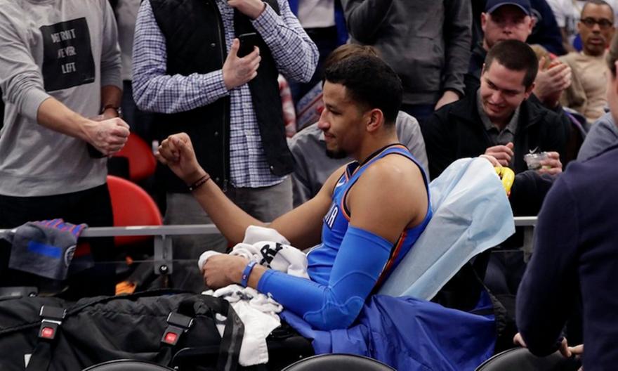 Ο φόργουορντ των Θάντερ είχε ένα άτσαλο πέσιμο στο παρκέ, στο τρίτο δεκάλεπτο του ματς με τους Πίστονς, με αποτέλεσμα να τραυματιστεί σοβαρά στο γόνατο και να χρειαστεί χειρουργική επέμβαση.
