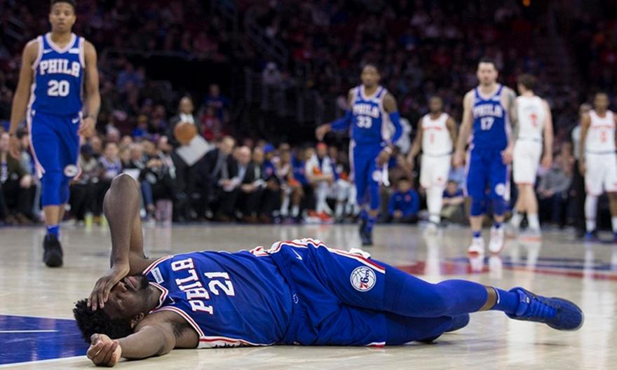 Τζοέλ Εμπίντ και Μαρκέλ Φουλτζ πήγαν να αλλάξουν την μπάλα χέρι με χέρι στον αγώνα των Σίξερς με τους Νικς, αλλά το μόνο που κατάφεραν ήταν να τρακάρουν τα κεφάλια τους και να καταλήξουν στο παρκέ.