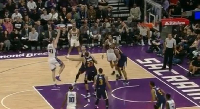 Στον αγώνα των Κινγκς με τους Τζαζ ο ομογενής σέντερ, που έκανε νταμπλ-νταμπλ (12π.-10 ριμπ.), σκόραρε με ένα «πεταχτάρι» που θύμισε λίγο και την περίφημη «μπομπίτα» του Χουάν Κάρλος Ναβάρο.