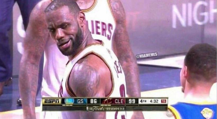 Μια εντυπωσιακή τάπα του Λεμπρόν Τζέιμς στον Στεφ Κάρι φάνηκε να βάζει τέλος στις ελπίδες των Γουόριορς να σηκώσουν το πρωτάθλημα μέσα στο Κλίβελαντ. Ο «βασιλιάς» γύρισε στον MVP και φάνηκε να του λέει «Sit down boy, sit down» (μτφ: «κάτσε κάτω, μικρέ».