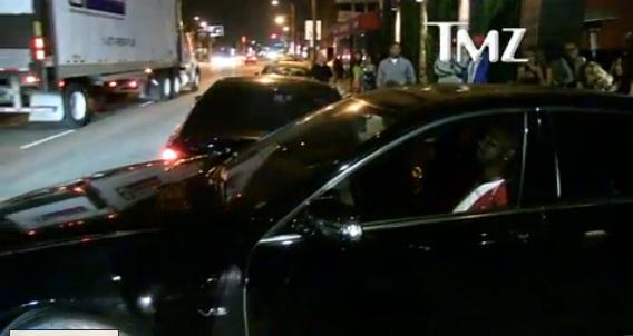 Κάθισε στη θέση του συνοδηγού στη Mercedes ενός φίλου του, όταν μία απρόσεκτη κοπέλα με Lexus έπεσε με την όπισθεν πάνω του. Κι όλα αυτά έξω από νυχτερινό κλαμπ του LA και μπροστά σε τηλεοπτική κάμερα που κατέγραψε το περιστατικό. Όπως και όλα τα «γαλλικά» που ακούστηκαν…