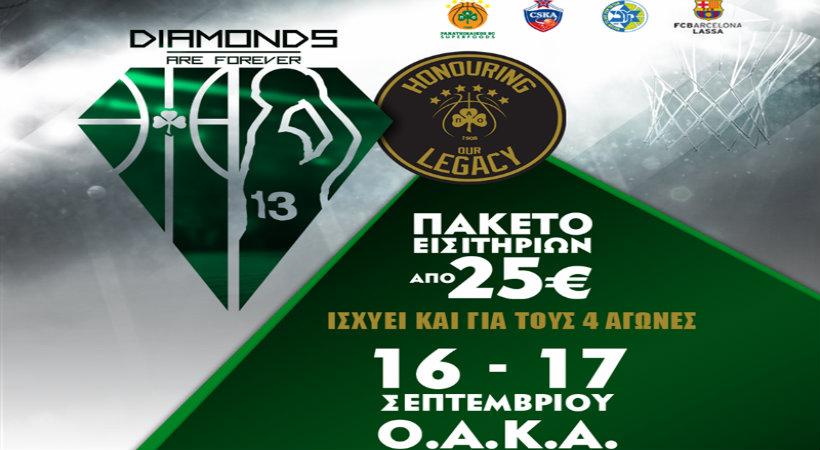 Νέα ανακοίνωση εξέδωσε η ΚΑΕ Παναθηναϊκός Superfoods, με την οποία ενημερώνει το φίλαθλο κόσμο πως διατίθενταιν εισιτήρια από σήμερα (12/09) μέχρι και την Παρασκευή (16/09) από τις 10:00 έως τις 18:00, και από τα εκδοτήρια του ΟΑΚΑ, για το Τουρνουά «Diamonds Are Forever», που γίνεται προς τιμήν του Δημήτρη Διαμαντίδη, με τη συμμετοχή μεγάλων ευρωπαϊκών ομάδων.