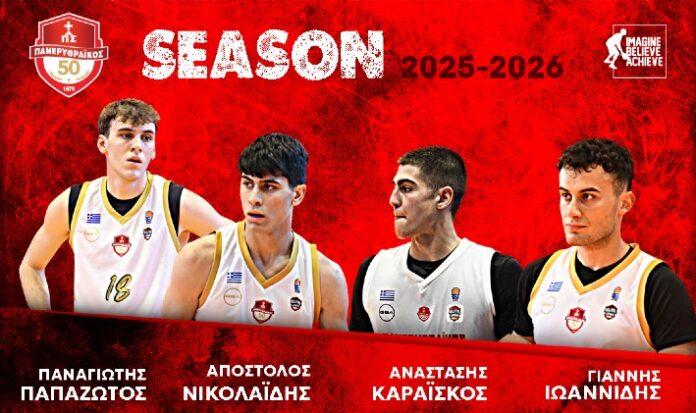 Οι αθλητές Γιάννης Ιωαννίδης (30 συμμετοχές, 16 λεπτά συμμετοχής), Αναστάσης Καραΐσκος (30 συμμετοχές, 13 λεπτά συμμετοχής), Απόστολος Νικολαΐδης (34 συμμετοχές, 14.5 λεπτά συμμετοχής) και Παναγιώτης Παπαζώτος (9 συμμετοχές, 10 λεπτά συμμετοχής), που εξελίχθηκαν μέσα από το πρόγραμμα του Πανερυθραϊκού και συνέχισαν με ρόλο στην ανδρική ομάδα, θα παραμείνουν στο σύλλογό μας και τη σεζόν 2025-2026, έχοντας κερδίσει τη δική τους θέση στο παρκέ.