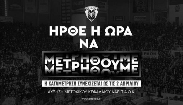 Η Αύξηση Μετοχικού Κεφαλαίου της ΚΑΕ ΠΑΟΚ πήρε παράταση μέχρι τις 2 Απριλίου, προκειμένου να επιτευχθεί ο μεγάλος στόχος της συγκέντρωσης των 500.000 ευρώ, με τη στήριξη του κόσμου να συνεχίζεται.