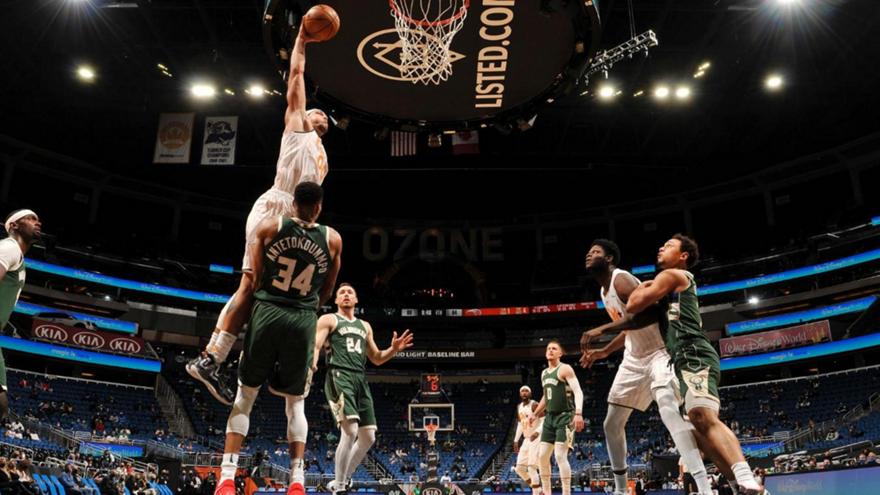 Ο… ιπτάμενος πάουερ φόργουορντ των Μάτζικ στην ήττα από τους Μπακς είχε δύο εντυπωσιακά καρφώματα, στο νούμερο «10» και την κορυφή αντίστοιχα.
