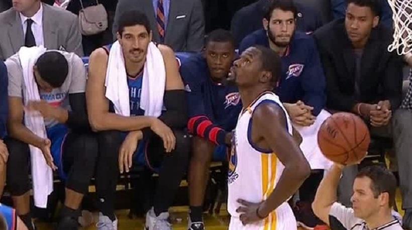 Ο διάλογος που άνοιξαν στη μέση του αγώνα ο Κέβιν Ντουράντ με τον Ενές Καντέρ ήταν το highlight στην άνετη νίκη των Γουόριορς επί των Θάντερ.