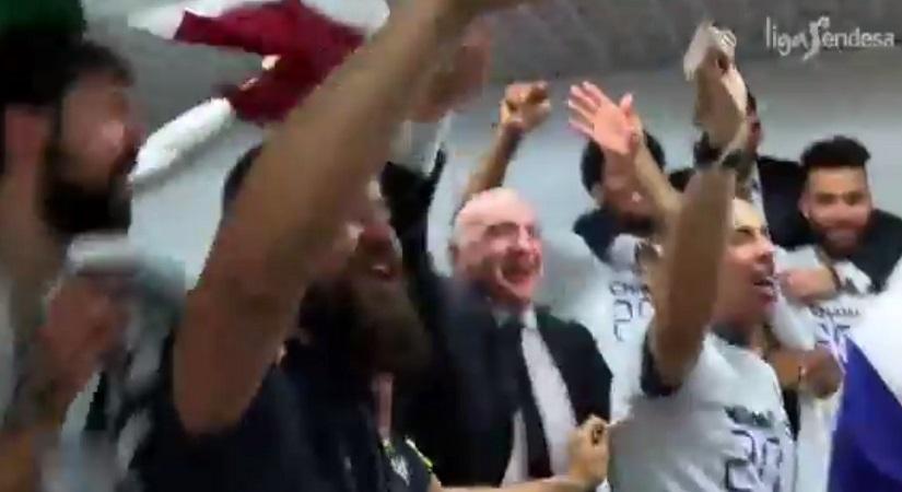 Ατέλειωτο γλέντι στα αποδυτήρια της Ρεάλ μετά τη νίκη επί της Μπαρτσελόνα και την κατάκτηση του πρωταθλήματος για δεύτερη συνεχή χρονιά.