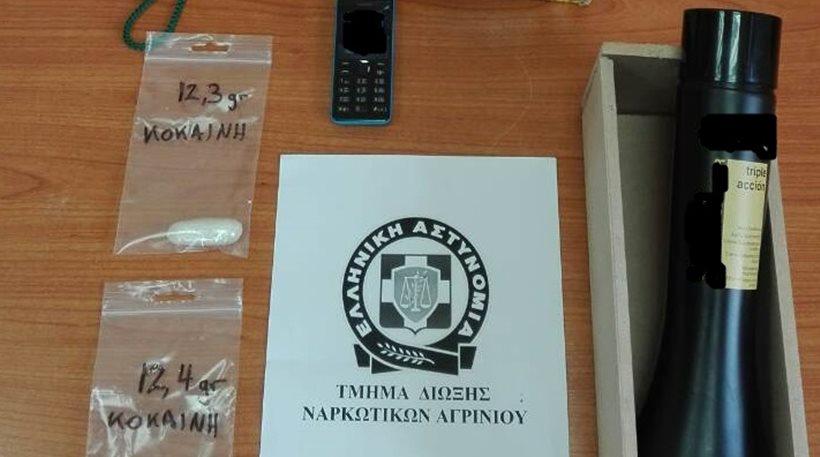 Ο 49χρονος εντοπίστηκε από αστυνομικούς της Δίωξης Ναρκωτικών Αγρινίου οι οποίοι είχαν πληροφορίες ότι επρόκειτο να σταλούν ναρκωτικά από την πρωτεύουσα και τον ακινητοποίησαν όταν τον είδαν να παραλαμβάνει το ύποπτο δέμα με άγνωστο αποστολέα, ενώ και το όνομα του παραλήπτη ήταν διαφορετικό από το δικό του. Όταν άνοιξαν το επίμαχο δέμα, διαπίστωσαν ότι είχε μέσα ένα μπουκάλι σαμπουάν μέσα στο οποίο ήταν κρυμμένες δύο νάιλον συσκευασίες με κοκαΐνη συνολικού βάρους 24,7 γραμμαρίων!