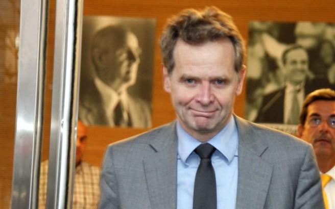 Ο κ. Τόμσεν έφτασε στο γερμανικό υπουργείο Οικονομικών ενώ βρισκόταν σε εξέλιξη η συνάντηση των δυο υπουργών και σε ερώτηση σχετικά με το αν θα συμμετάσχει σε αυτήν απάντησε αρνητικά.