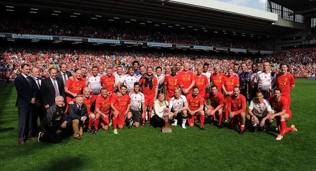 Στο γρασίδι του «Άνφιλντ» βρέθηκαν χέρι-χέρι παλιές μεγάλες δόξες της ομάδας. Έδωσαν το «παρών» πρώην ποδοσφαιριστές που είχαν συνυπάρξει της μέρες της δόξας των «κόκκινων», όπως για παράδειγμα το «φονικό δίδυμο» της δεκαετίας του ’80 Νταλγκλίς, Ρας.