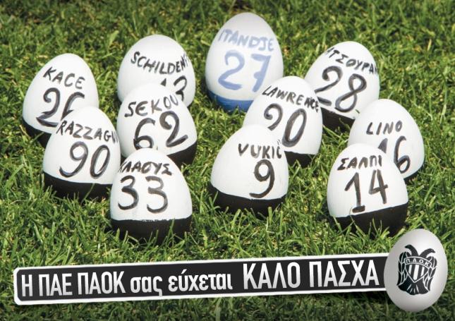 Στον ΠΑΟΚ, όπως και σε όλες τις ομάδες έχουν κατεβάσει... ρολά για να περάσουν άπαντες το Πάσχα μαζί με τις οικογένειές τους. Η "ασπρόμαυρη" ΠΑΕ έστειλε τις δικές της ευχές για τις Άγιες μέρες.