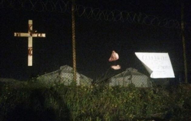 Οι δράστες εκτός από τη γουρουνοκεφαλή κρέμασαν και έναν σταυρό, πότισαν τη γη με αίμα γουρουνιού και ανάρτησαν και ένα χαρτόνι που έγραφε «Η Ελλάδα έχει ιδιοκτήτη την υπέρμαχο στρατηγό, την προστάτιδα του γένους των Ελλήνων».