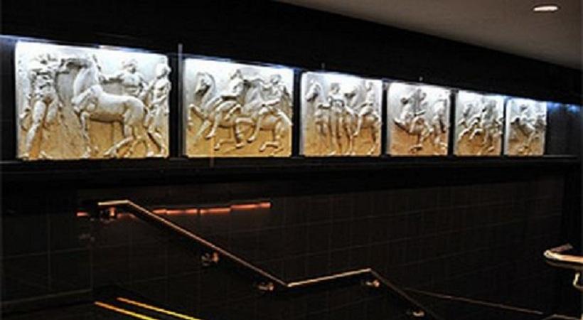 Οι τοίχοι είναι καλυμμένοι με αγάλματα, προτομές, αγγεία, μάσκες και γλυπτές αναπαραστάσεις της αρχαίας Ελλάδας, σε έναν σταθμό αφιερωμένο στην χώρα μας.