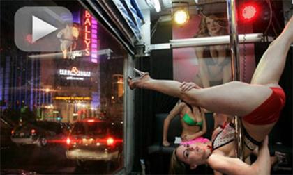 Το stripper mobile επέστρεψε χριστουγεννιάτικο και για καλό σκοπό. Καλλίγραμμες και γυμνασμένες καλλονές κάνουν strip show μέσα σε φορτηγό που κινείται στους δρόμους του Λας Βέγκας.
