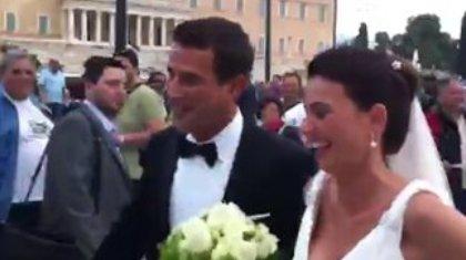 Αξέχαστη θα μείνει η σημερινή ημέρα σε ένα νιόπαντρο ζευγάρι. Οι δύο νέοι, εκείνος Έλληνας και εκείνη Γερμανίδα, επέστρεφαν από το γάμο τους με προορισμό το ξενοδοχείο Μεγάλη Βρετανία, όπου διαμένουν όταν συνάντησαν το πλήθος των Αγανακτισμένων στην πλατεία Συντάγματος.