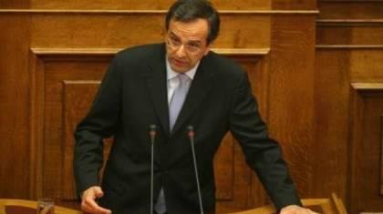 Τους όρους και τις προϋποθέσεις, αλλά και τις δικές του «κόκκινες γραμμές» έθεσε ο πρόεδρος της ΝΔ κ. Αντώνης Σαμαράς, μιλώντας στην Κοινοβουλευτική Ομάδα του κόμματός του. «Η μόνη συναίνεση που μπορεί να υπάρξει, είναι για την επαναδιαπραγμάτευση του Μνημονίου επί τη βάση της πρότασης της ΝΔ για την επανεκκίνηση της οικονομίας, που ξεκινά από τη μείωση των φορολογικών συντελεστών» είπε χαρακτηριστικά.
