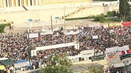 Σε εξέλιξη βρίσκεται το δεύτερο μεγάλο πανευρωπαϊκό ραντεβού των «Αγανακτισμένων» στο Σύνταγμα. Οι διαδηλωτές συρρέουν κατά εκατοντάδες στο κέντρο της Αθήνας και δίνουν για δωδέκατη μέρα δυναμικό παρών μπροστά από το Κοινοβούλιο. Η σημερινή συγκέντρωση δείχνει να μην έχει προηγούμενο καθώς σύμφωνα με τις τελευταίες εκτιμήσεις το πλήθος κόσμου ξεπερνά τις 100.000.