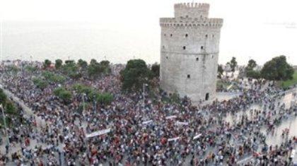 Πορεία στο κέντρο της Θεσσαλονίκης πραγματοποιούν αυτήν την ώρα οι «Αγανακτισμένοι» που έχουν κλείσει την παραλιακή λεωφόρο.