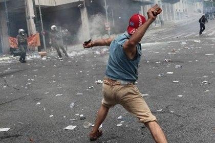 Κομμάτια από μάρμαρο, πέτρες και μια αποπνικτική ατμόσφαιρα, συνθέτουν το πάζλ της πλατείας Συντάγματος, αυτή την ώρα, μετά τα χθεσινά επεισόδια.