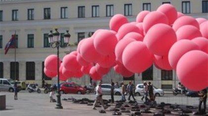 «Στήθηκε χθες Πέμπτη 22 Σεπτεμβρίου στην Πλατεία Κοτζιά μπροστά από το Δημαρχιακό Μέγαρο η μεγάλη εγκατάσταση Red Eyed Sky Walkers της Τζένης Μαρκέτου. Το σημαντικό αυτό έργο που ανήκει στη συλλογή του Εθνικού Μουσείου Σύγχρονης Τέχνης αποτελείτο από 99 μετεωρολογικά κόκκινα μπαλόνια και μικρές ασύρματες βίντεο κάμερες τοποθετημένες ανάμεσά τους, που πρόβαλλαν σε πραγματικό χρόνο τις εικόνες στο εσωτερικό ενός γειτονικού καφενείου.