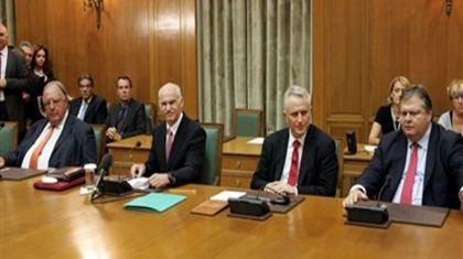 Σε εξέλιξη η συνάντηση του υπουργού Ευάγγελου Βενιζέλου με το κλιμάκιο της «τρόικας». Στο επίκεντρο το χρονοδιάγραμμα εφαρμογής που ανακοίνωσε πρόσφατα η Κυβέρνηση.