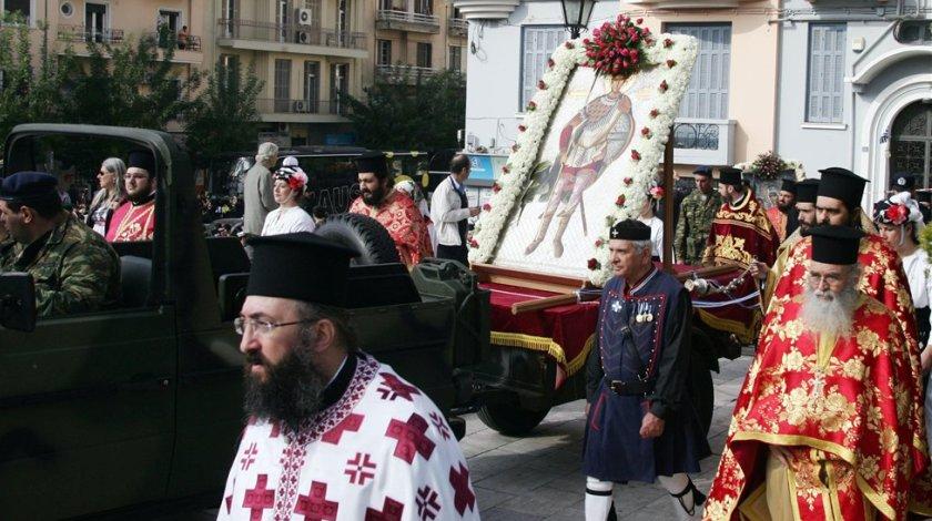 Πλήθος κόσμου κατέκλυσε τον ιερό ναό Αγίου Δημητρίου και συμμετείχε στην περιφορά των εικόνων. Από τον πολιτικό κόσμο το «παρών» έδωσαν μόνο οι βουλευτές της Ν.Δ. Κωνσταντίνος Γκιουλέκας και Γιάννης Ιωαννίδης, ο εν αργία περιφερειάρχης Παναγιώτης Ψωμιάδης και ο αντιπεριφερειάρχης Απόστολος Τζιτζικώστας.