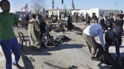 Στη Νασιρίγια ένας καμικάζι πυροδότησε τη βόμβα που έφερε την ώρα που βρισκόταν μεταξύ σιιτών προσκυνητών που μετέβαιναν στην ιερή πόλη Κερμπάλα για μια σιιτική γιορτή.