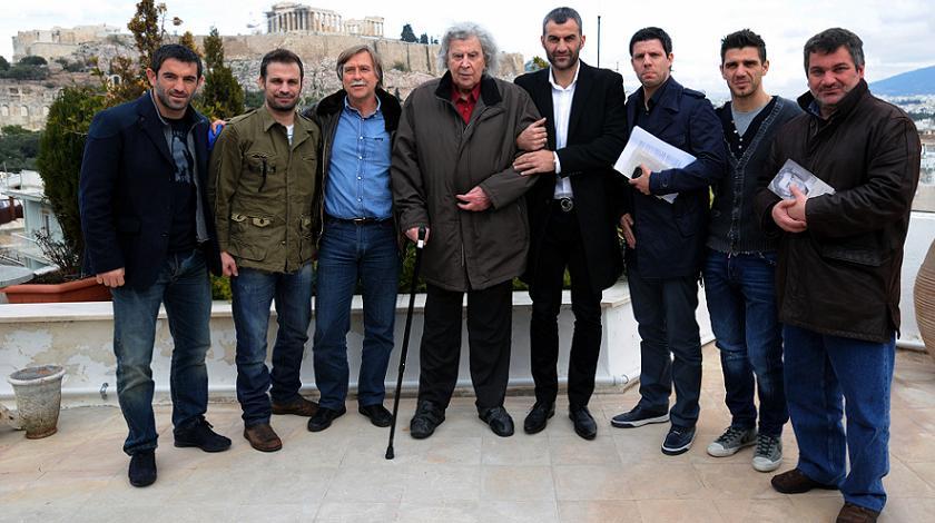Οι Τραϊανός Δέλλας, Ντέμης Νικολαΐδης, Κώστας Κατσουράνης, Γιώργος Καραγκούνης και Τάκης Φύσσας, εκπρόσωποι όχι μόνο της Εθνικής ομάδας που ανέβηκε στην κορυφή της Ευρώπης, αλλά και μιας νοοτροπίας που αποδεικνύει πως οι Έλληνες μπορούν, φιλοξενήθηκαν το μεσημέρι της Παρασκευής στο σπίτι του Μίκη Θεοδωράκη.