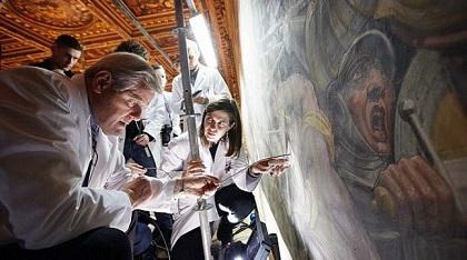 Με ενδοσκόπιο οι επιστήμονες εισχώρησαν στο εσωτερικό του τοίχου στο Palazzo Vechio και απέσπασαν χημικά δείγματα σκούρου χρώματος, το οποίο ο Ντα Βίντσι χρησιμοποίησε και στη «Μόνα Λίζα».