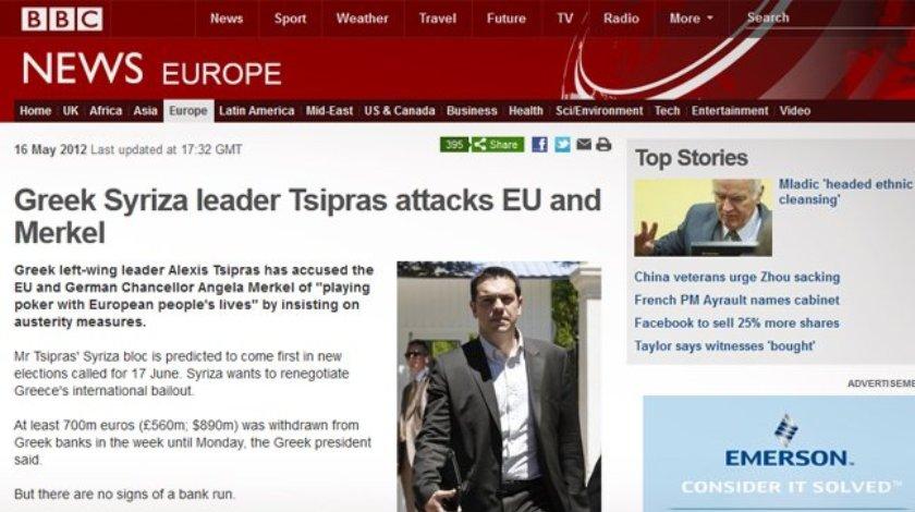 Σκληρή επίθεση στη Γερμανίδα καγκελάριο, Άγκελα Μέρκελ, εξαπέλυσε ο πρόεδρος του ΣΥΡΙΖΑ, Αλέξης Τσίπρας, σε συνέντευξή του στην ιστοσελίδα του BBC.