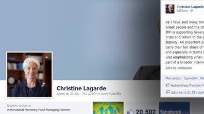 Μπορεί η Κριστιν Λαγκάρντ να «απολογήθηκε» στους Έλληνες μέσω Facebook, μετά τις σκληρές δηλώσεις της στην βρετανική εφημερίδα The Guardian, ωστόσο, η οργή των Ελλήνων δεν έχει ακόμα ξεθυμάνει, όπως φαίνεται και από τα σχόλια στο προφίλ της επικεφαλής του ΔΝΤ, στην γνωστή ιστοσελίδα κοινωνικής δικτύωσης.