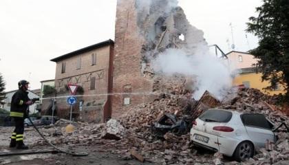 Στο χωριό Φινάλε Εμίλια κατέρρευσε σήμερα ο πύργος που είχε ήδη υποστεί σοβαρές ζημιές, ενώ στη Μιράντολα γκρεμίστηκε τμήμα της εκκλησίας.