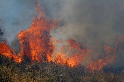 Η φωτιά δεν απειλεί κατοικημένες περιοχές, καίει καλλιέργειες και εκτάσεις με χαμηλή βλάστηση.