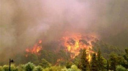Για την κατάσβεσή της επιχειρούν 24 πυροσβέστες με 10 οχήματα, έξι άτομα πεζοπόρο τμήμα και ένα ελικόπτερο.