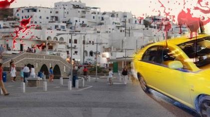 Δίπλα ακριβώς στην τράπεζα υπάρχε πιάτσα ταξί και έτσι ο 45χρονος οδηγός που ήταν παντρεμένος με μια από τις κόρες της τραγουδίστριας Βίκυς Μοσχολιού και του παλαίμαχου ποδοσφαιριστή του Παναθηναϊκού Μίμη Δομάζου, πλησίασε πρώτος τους ληστές. Αδίστακτοι και ψυχροί ένας από αυτούς σήκωσε το όπλο και τον πυροβόλησε στο κεφάλι τρεις φορές. Ο άτυχος άνδρας μεταφέρθηκε στο κέντρο υγείας του νησιού όμως ήταν ήδη αργά.