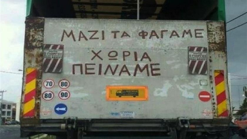 Με αφορμή την παραπάνω φωτογραφία, επιτίθεται στους φορτιγατζήδες: «ο κ. ιδιοκτήτης φορτηγού που λέει οτι αυτός “δεν έφαγε” ψεύδεται. “Έφαγε” κατά κόρον διότι και αυτός και άλλοι σαν κ’ αυτόν προστατεύονταν από το πελατειακό κλειστό συντεχνιακό σύστημα».
