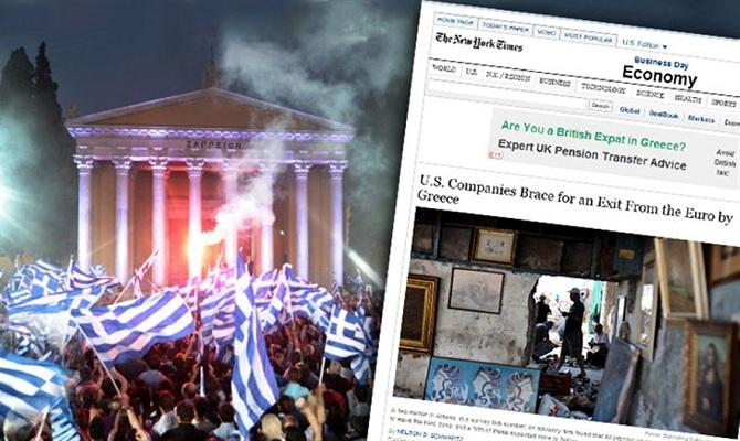 Ξεπερνάει κάθε όριο το σημερινό πρωτοσέλιδο δημοσίευμα των New York Times, το οποίο αναφέρει ότι αμερικανικές επιχειρήσεις προετοιμάζονται για πιθανή έξοδο της Ελλάδας από τη ζώνη του ευρώ.