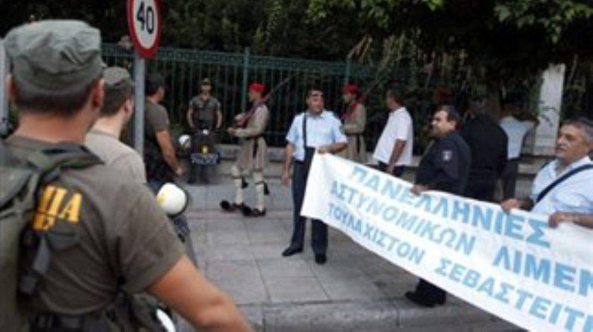 Οι ένστολοι πραγματοποίησαν συγκέντρωση διαμαρτυρίας στην οδό Ηρώδου του Αττικού, στη συμβολή της με την οδό Μουρούζη, κατά τη διάρκεια της σύσκεψης των πολιτικών αρχηγών.