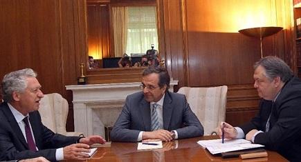 Αν κυλήσει καλά η σημερινή σύσκεψη, οι κ.κ. Σαμαράς, Βενιζέλος και Κουβέλης θα καταρτίσουν οριστικό χρονοδιάγραμμα για την έγκριση του συνολικού πακέτου από τη Βουλή.