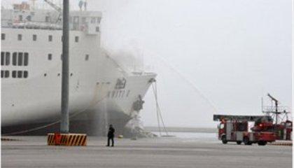 Εγκλωβισμένα στο γκαράζ του πλοίου είναι εννέα φορτηγά, τα οποία έχουν υποστεί σοβαρές ζημιές από τη φωτιά και είναι δύσκολη η απομάκρυνσή τους.