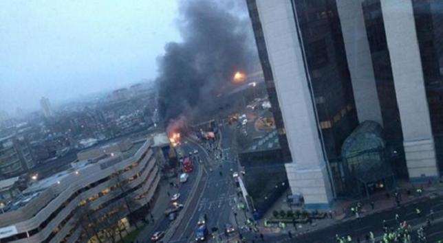 Όπως μεταδίδουν το BBC και το SKY NEWS, το ελικόπτερο τύπου «Αgusta», προσέκρουσε αρχικά σε γερανό που ήταν τοποθετημένος στην κορυφή ουρανοξύστη. Στη συνέχεια έχασε απότομα ύψος, με αποτέλεσμα να συντριβεί στο έδαφος.