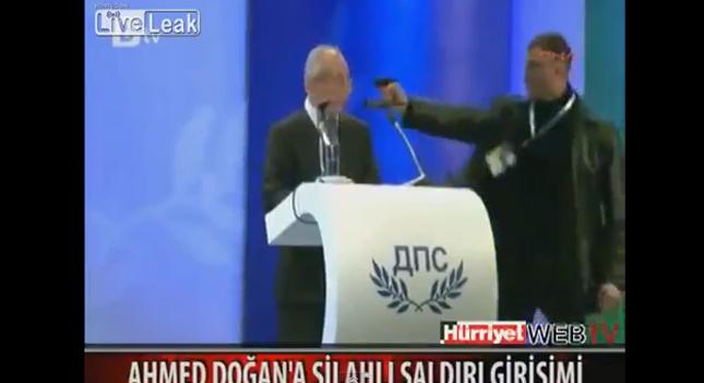 Την ώρα που ο Αχμέντ Ντογκάν, πρόεδρος βουλγαρικού κόμματος βρίσκεται στο βήμα του συνεδρίου του κόμματος, ένας άντρας ανεβαίνει τρέχοντας στη σκηνή.
